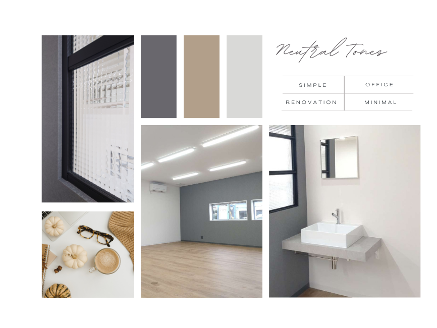 #オフィスリノベーション #倉庫リノベーション #ニュートラルカラー #集中できる空間 #木目×白×グレー -